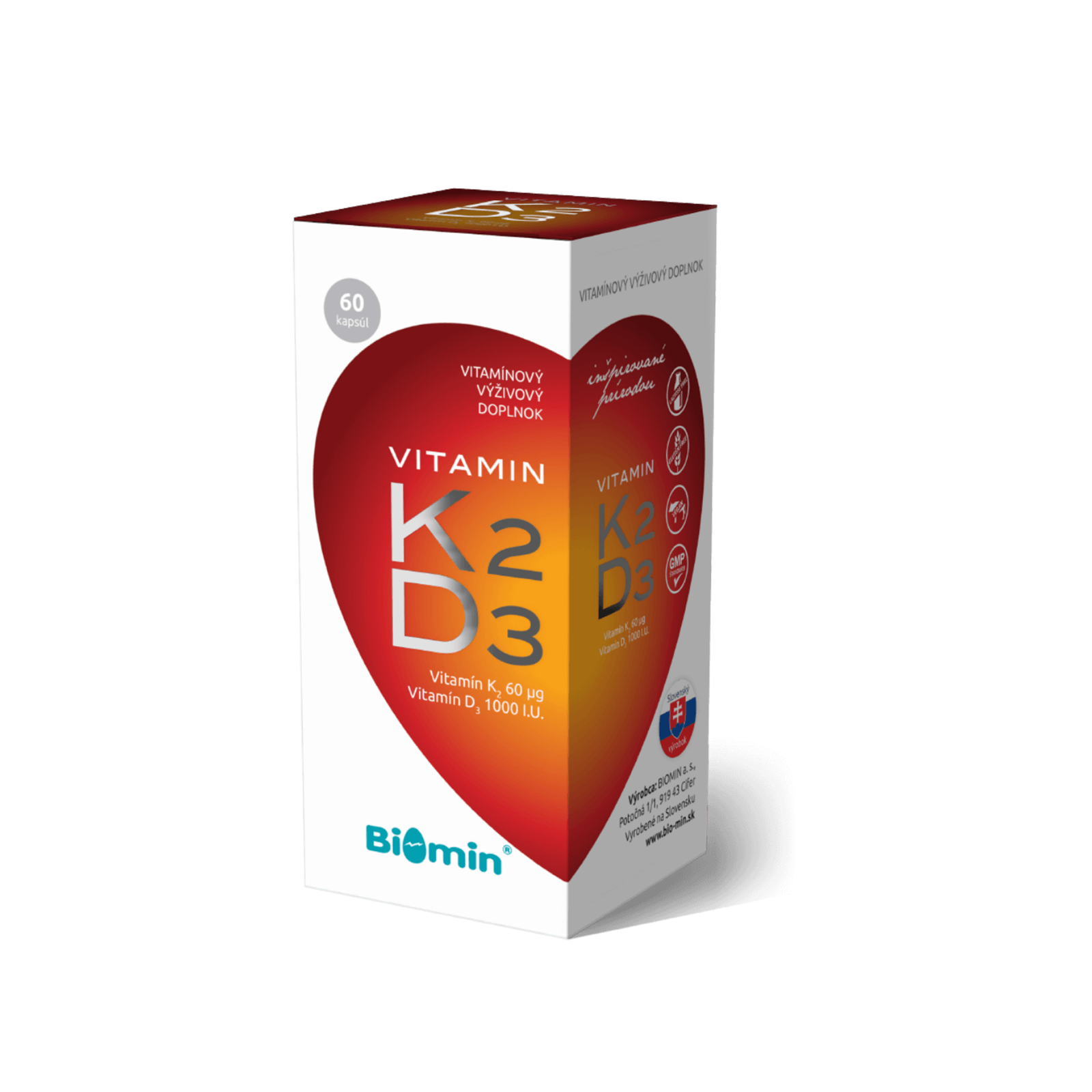 Doplněk stravy obsahující vitaminy K2 (ve formě 99,7 % all-trans K2 MK-7 z Norska) a vitamin D3 (cholekalciferol Quali®D).